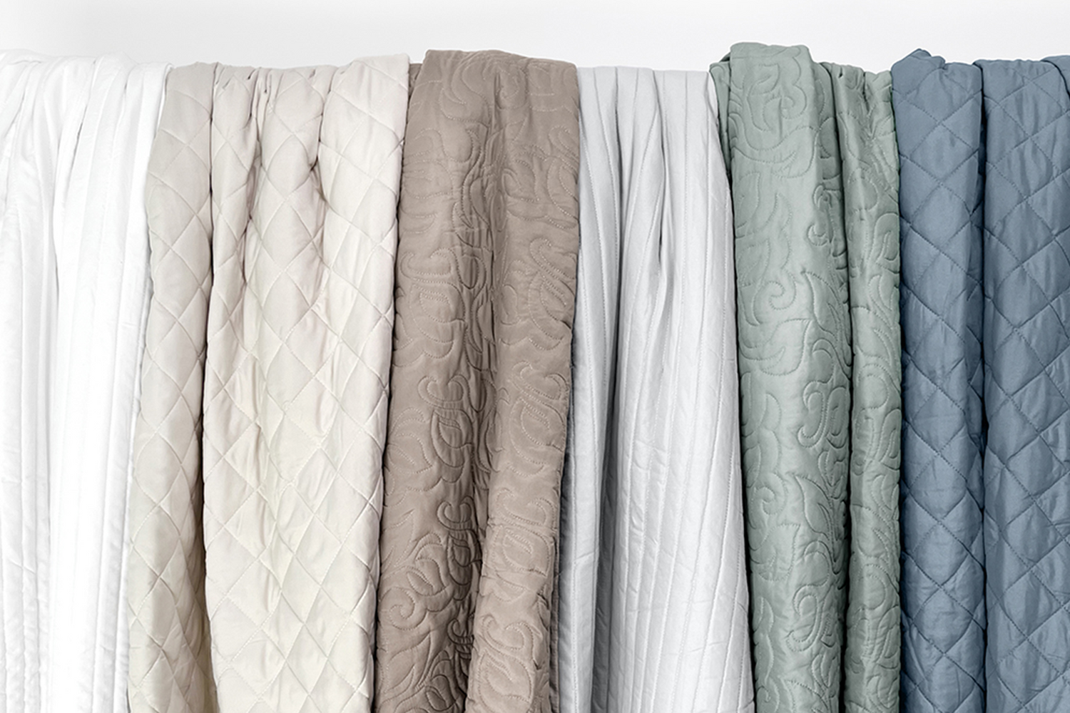 Simplicity never felt so good—solid quilts in calming tones.