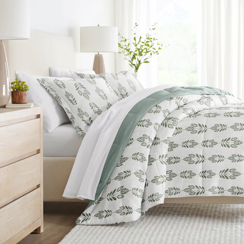 Bamboo Leaves Reversible Down-Alternative Comforter Set