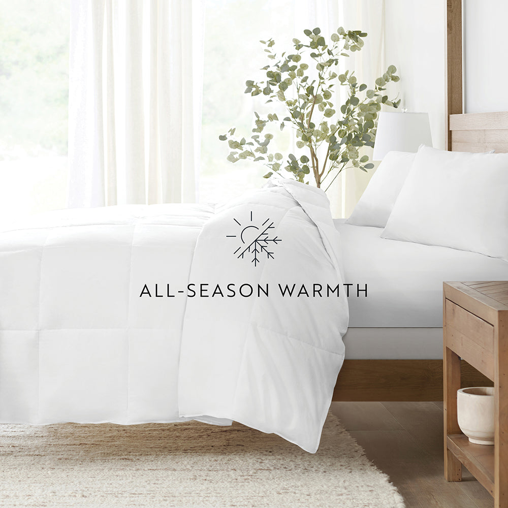 Designed with convenient loops at the corners, it easily secures to duvet covers, ensuring it stays perfectly in place. Experience a restful night's sleep wrapped in the gentle embrace of high-quality materials designed for lasting coziness and style. Ideal for year-round use, this white comforter elevates your bedding experience.